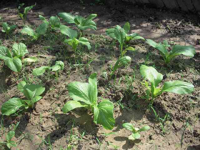 台湾から里帰りしたというご近所さんから、小松菜の種をもらって植えてみました(種は台湾から持ってきた)。そこそこ育っていますが、農薬を使用していないのと、畑の手入れが間に合わなくて、雑草もたくさん生えた状態になっています。