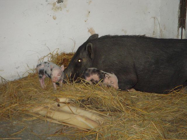 近づいて写真を撮ろうとすると、母親イノシシが警戒して鼻息を荒くして向かって来るので、(小屋の壁があるので大丈夫なのですが)急いで退散することにしました。