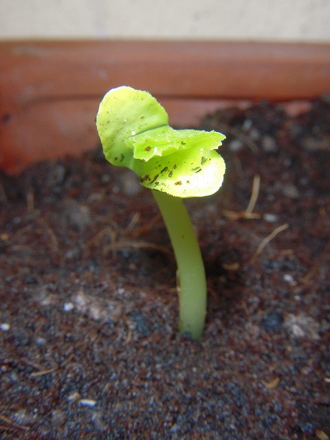 農場から持って帰った苦瓜の種を試しにベランダに蒔いておいたのですが、今朝見てみると芽が出ていました。